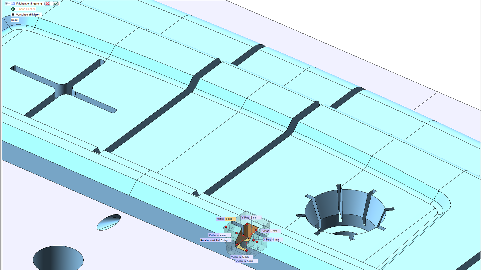 - Flächen bearbeiten, verlängern, trimmen, teilen, verrunden, Füllflächen und mehr...