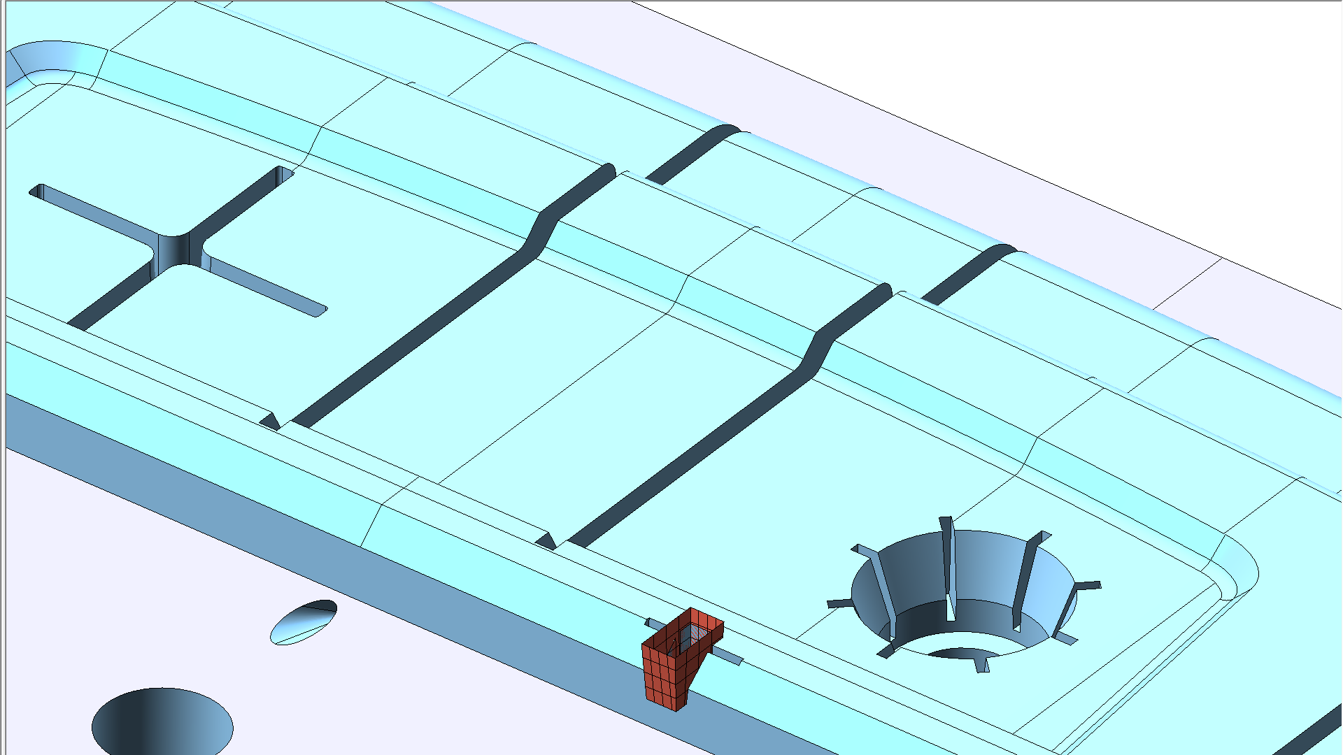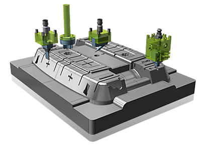 Mit Hilfe von tl-Elektrode können Elektroden von beliebigen Bezugsgeometrien extrahiert und erzeugt werden. Dies umfasst die automatische Erkennung von Geometrien in selektierten Bereichen, die Festlegung von Winkeln und tangentialen Verlängerungen, wobei der Benutzer zu allen Zeitpunkten vollständig Einfluss auf die automatischen Vorgaben ausüben kann. Eine simulierte Vorschau der Elektrode mit Halter ermöglicht die endgültige Bestimmung von Maßen und Positionierung, vermeidet Fehler und erkennt frühzeitig Kollisionen. tl-Elektrode arbeitet auf allen 3D-Daten ohne zeitaufwändige Vorbereitungen. Dabei ist es vollkommen egal, ob es sich um Volumen- oder Flächenmodelle handelt und aus welchem System die Daten importiert wurden. Zusätzlich stehen dem Anwender eine Vielzahl von Zeichnungs- und Flächenfunktionen für die Bearbeitung von Fremdgeometrien zur Verfügung.